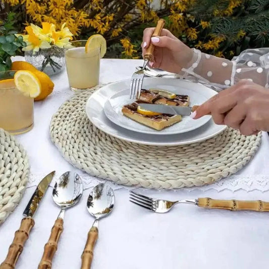 24 stk. Bambushåndtag Bestiksæt - Rustfrit Stål - Miljøvenlig - Håndlavet
