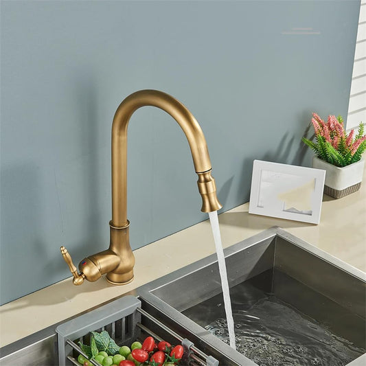 Antik Messing Køkkenarmatur - Blandingsbatteri Køkken - Swivel - Fleksibel