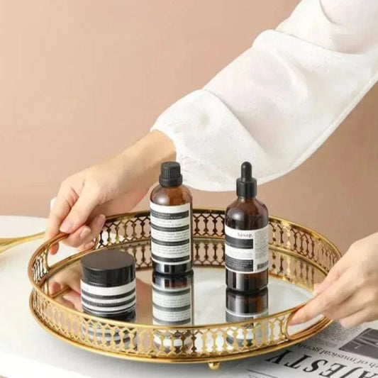 Vintage Guld Spejlvendt Serveringsbakke - Rund - Metal - Boligtilbehør