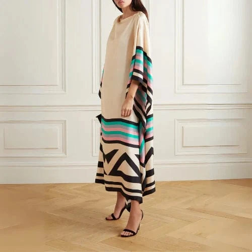 Geometrisk Mønster Kaftan Kjole Dame - Silke - Rund Hals - Sommerkjole