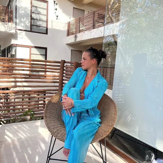 Todelt Plisse Bukser og Top Matchende Sæt - Oversized - Behagelig - Sommersæt