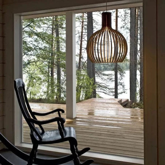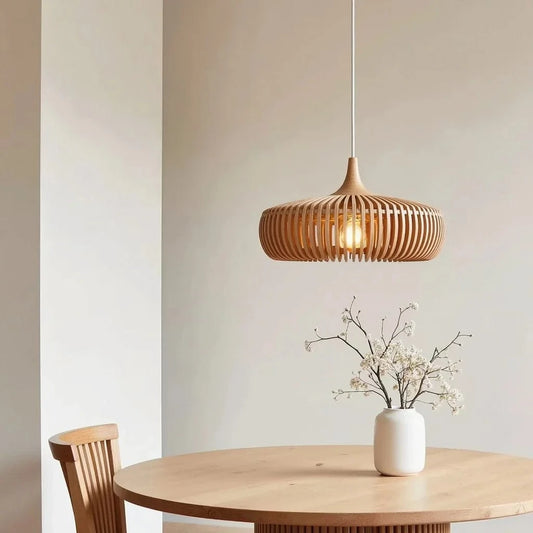 Træ Pendel Lampe - Vintage - Justerbar - Hængende - Boligindretning - LED Lys