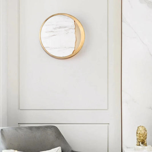 Rund Marmor Lampeskærm Væglampe - Guld - Boligindretning - 25cm