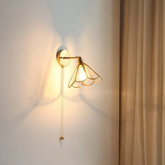 Pull Chain Blomsterglas Væglampe - Vintage - Messing - LED Lys
