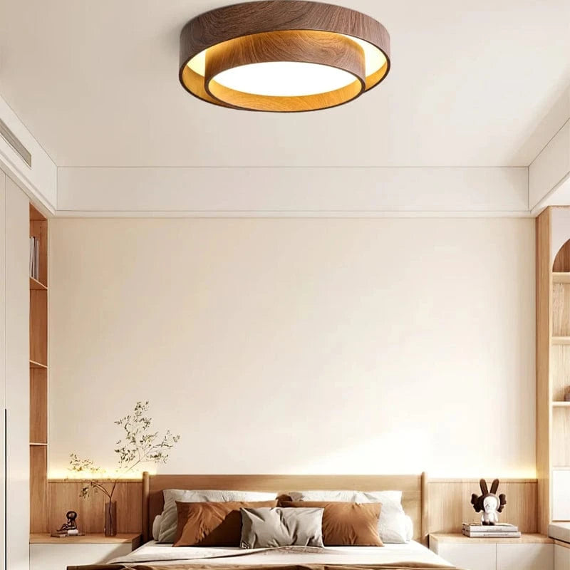 Dobbelt Cirkel Træ Loftlampe - Valnød - Wabi Sabi - Moderne