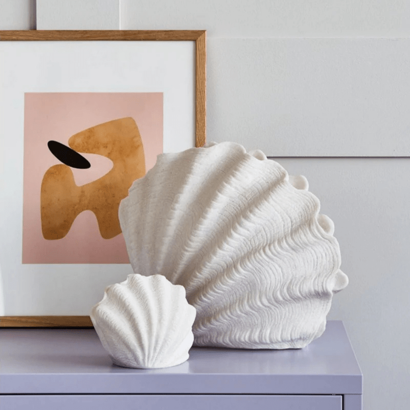 Bring en følelse af havet ind i dit hjem med denne elegante muslingeskaller natlampe i hvid resin-finish. Den varme, bløde belysning skaber en afslappet atmosfære – perfekt til soveværelse, badeværelse eller stue.